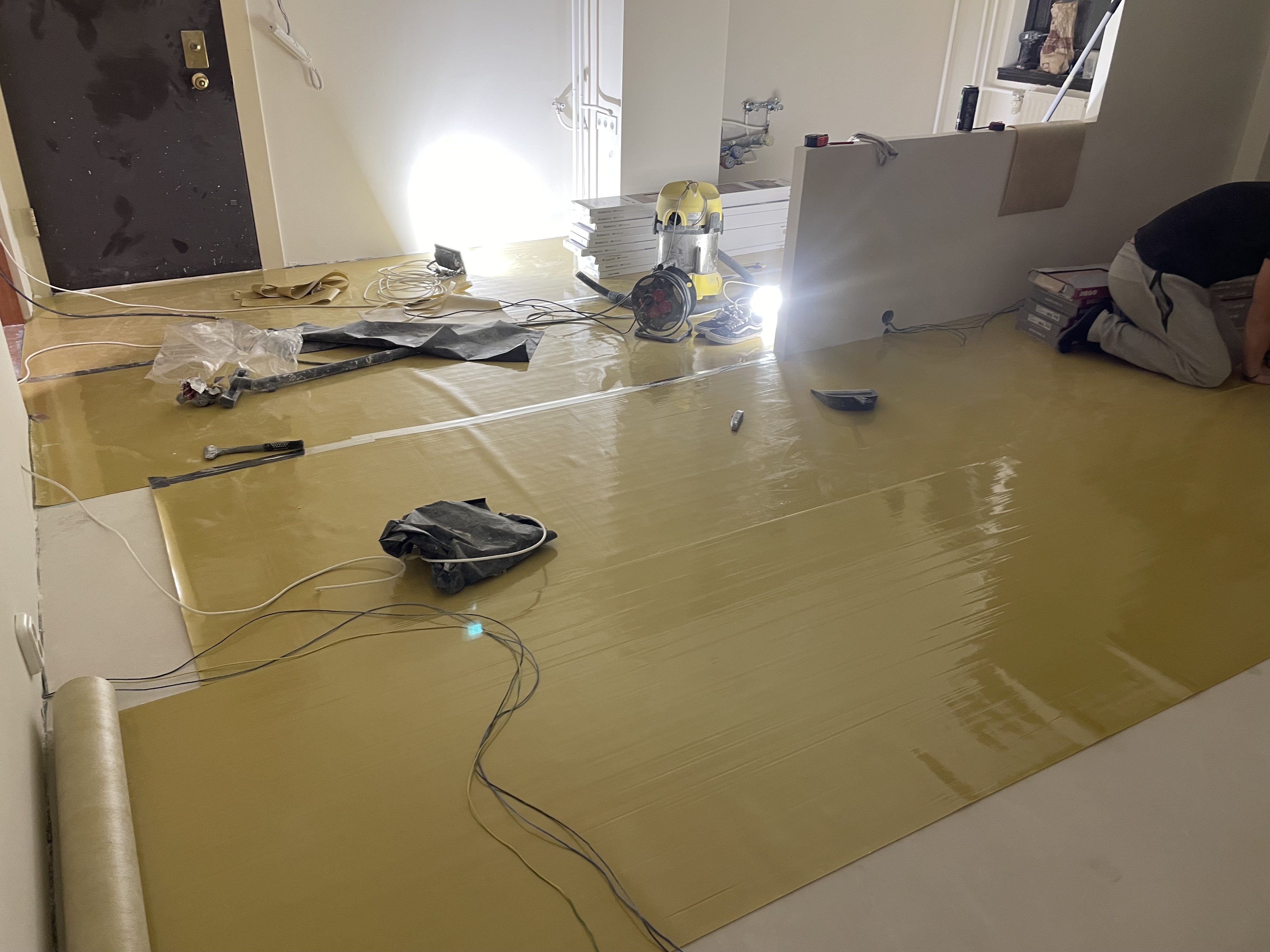 Aljzat kiegyenlítés, melegburkolás közbeni képek 8